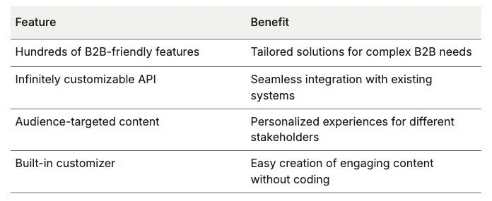 Limited Content Management: Difficulty in creating and managing content tailored to specific B2B audiences. One-size-fits-all ‘boilerplate’ content leaves missed opportunities for connecting with different types of customers.
