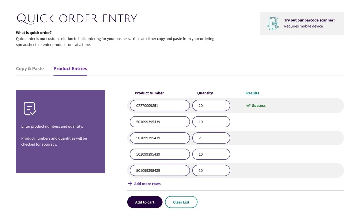 Provide tailored experiences for customer-specific pricing, payment terms, and discounts. This ensures a frictionless experience for your clients, strengthening relationships and driving repeat business.